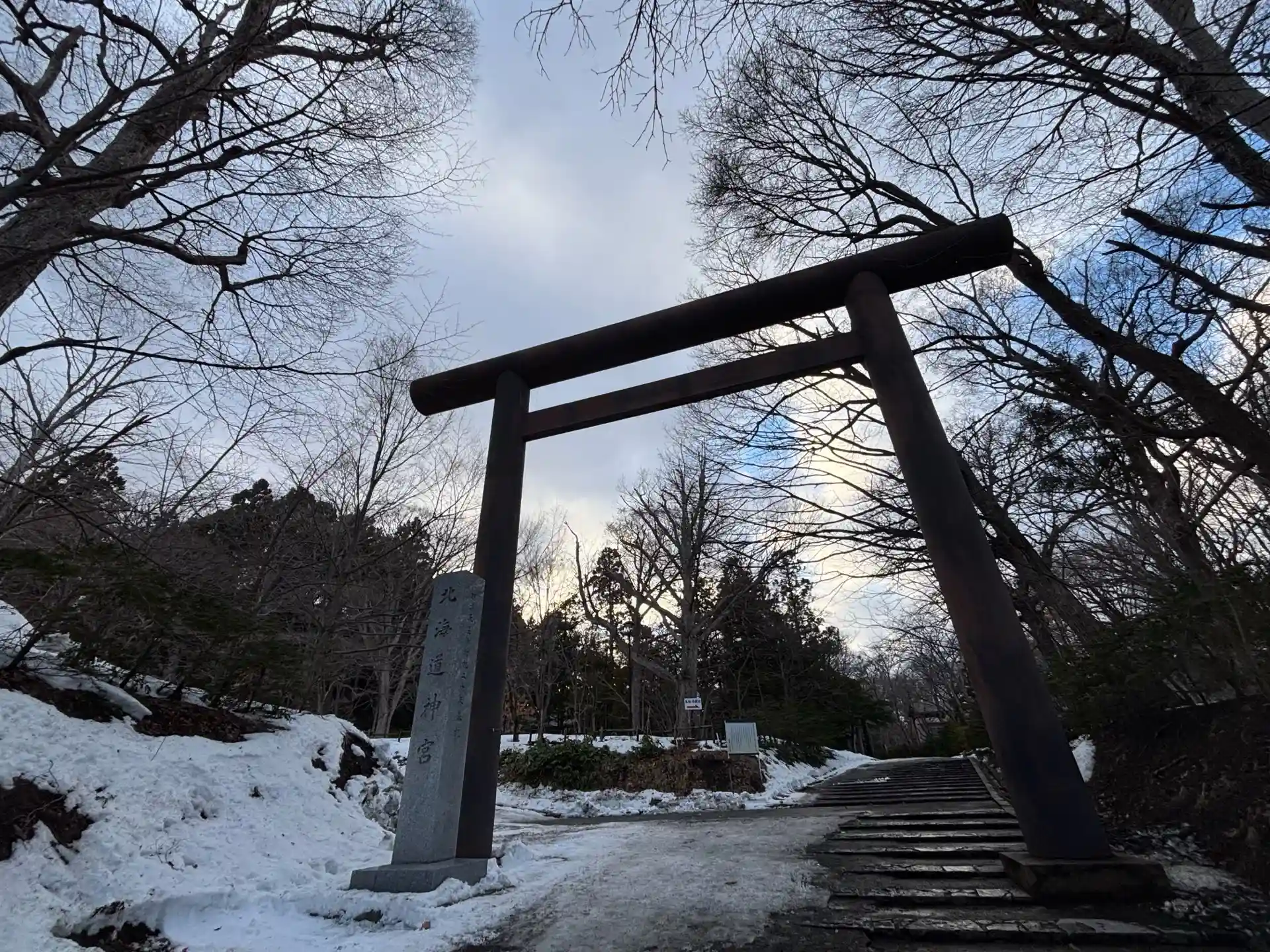 家族3人で2泊3日の北海道旅行中、単独行動で北海道神宮に参拝しました。ところどころ雪が残っており、転倒要注意です。