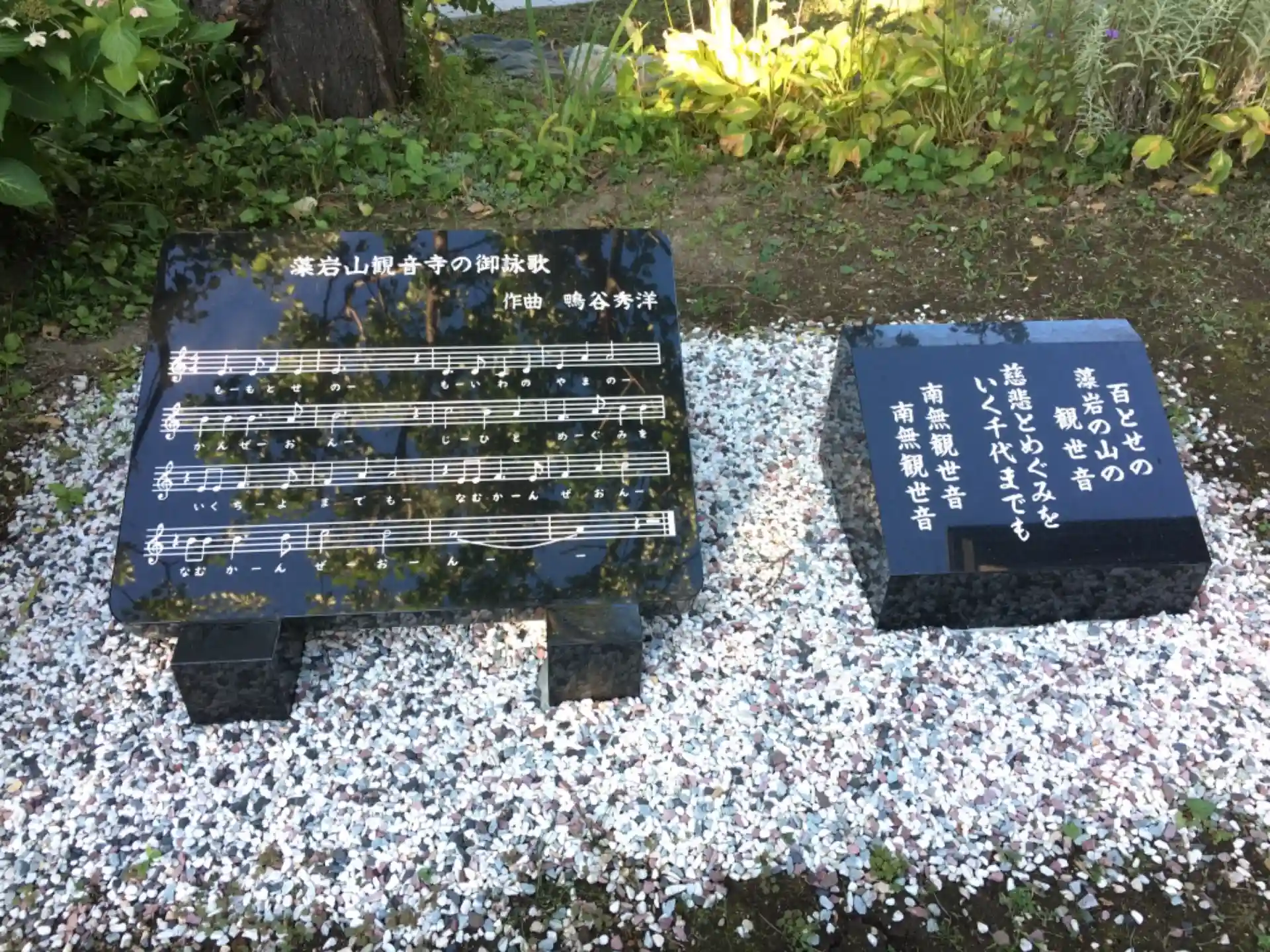御堂脇には御詠歌の石碑。
