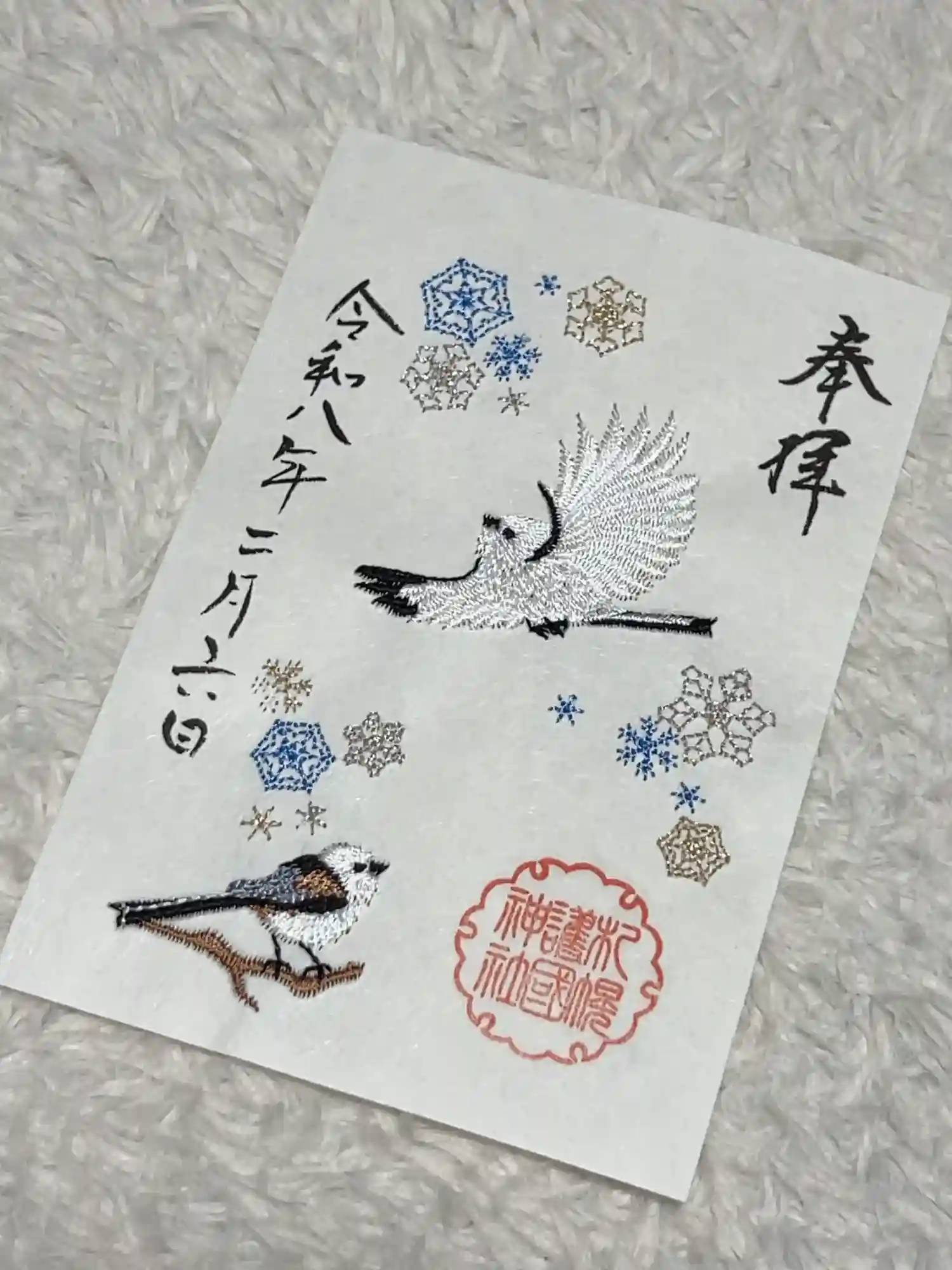 三が日限定御朱印と干支の御朱印、 シマエナガ刺繍御朱印の三種を拝受。可愛い刺繍♡白と黒の色違いがあり甲乙つけがたい… 悩みました!