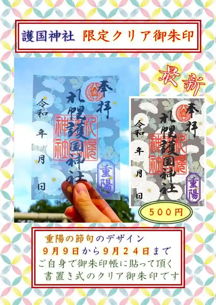 クリア御朱印は、札幌護国神社と多賀神社の2種類ご用意いたしました。