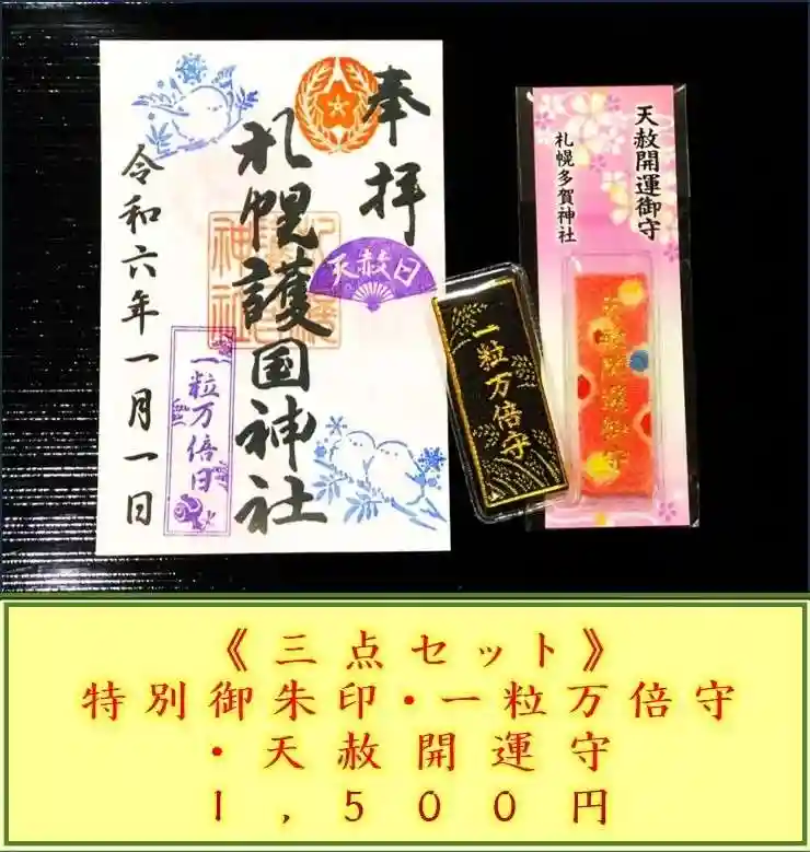 特別御朱印と一粒万倍守、天赦開運御守の三点セットで合わせて1,500円の初穂料となります。