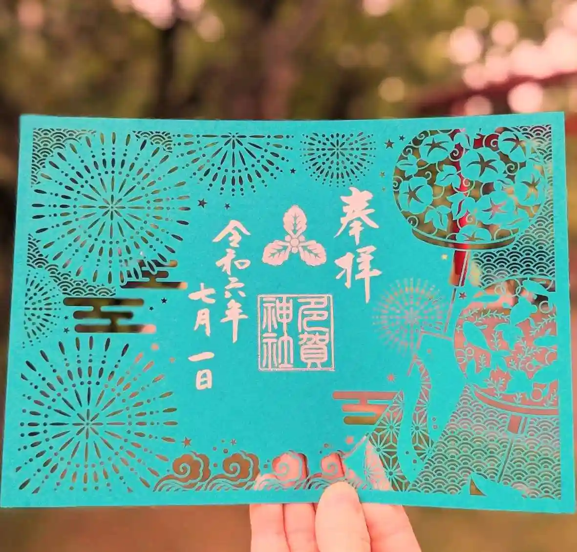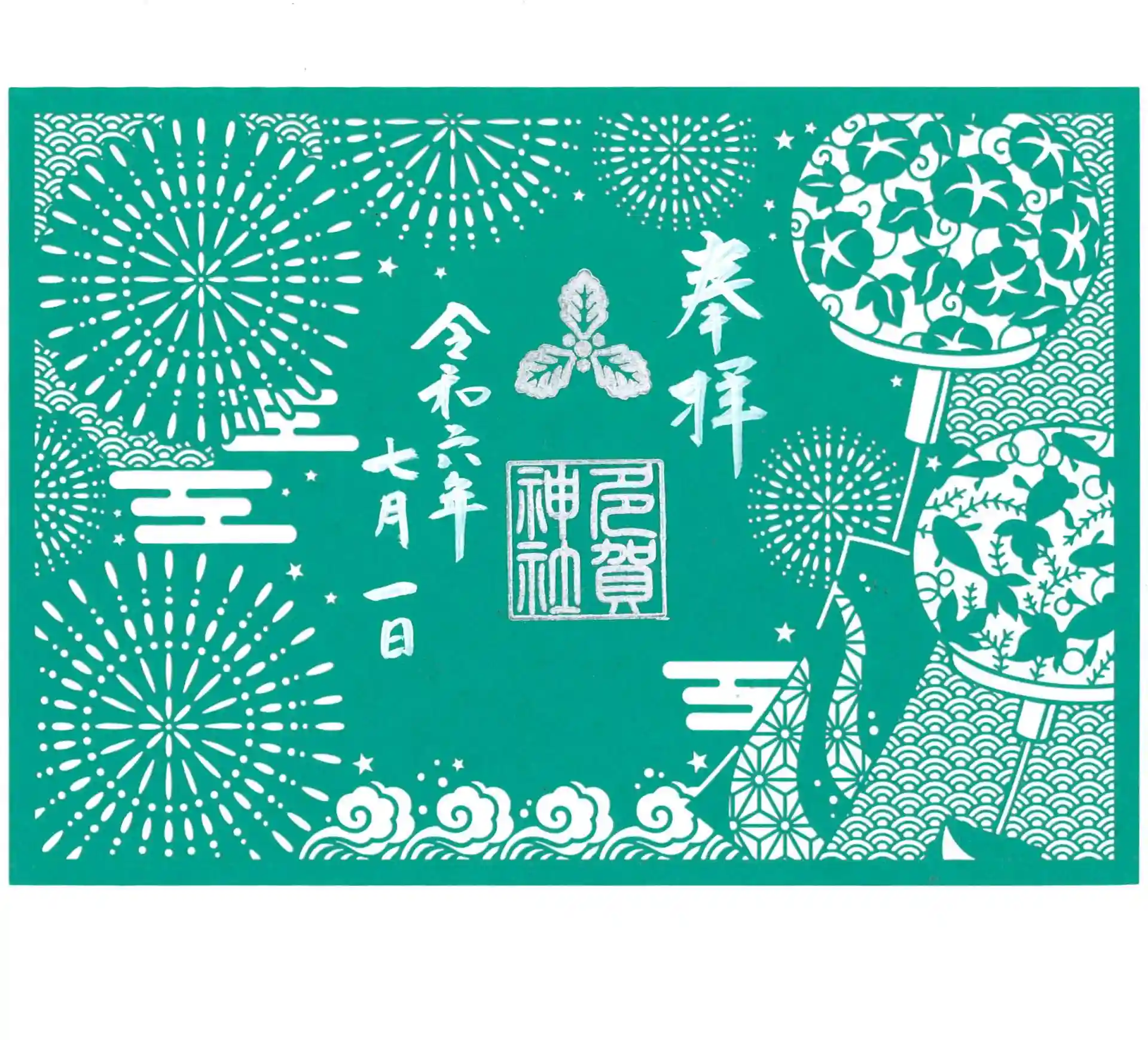 多賀神社の切り絵御朱印は「花火と風鈴」のデザインとなります。