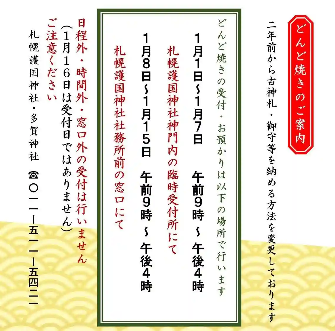 1月8日~1月15日 札幌護国神社社務所横窓口