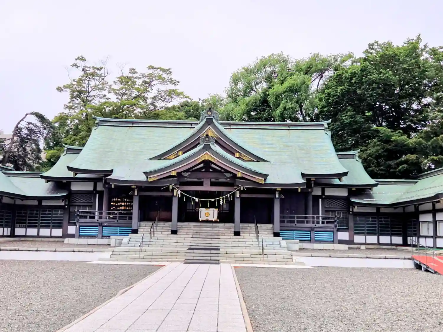 拝殿から神門を見ると、青と白の美しい世界✨
