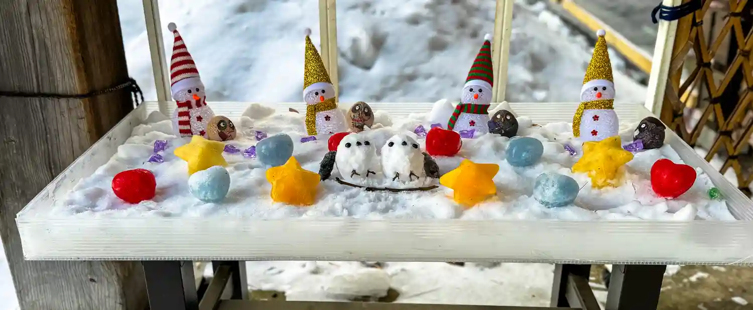 社務所には雪のシマエナガ。