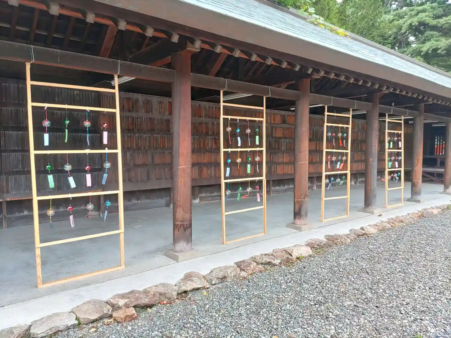 多賀神社の例大祭に向けて、境内の風鈴の飾りを増やしました。