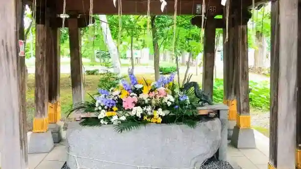 手水舎のお花が鮮やかさを増しました❗️