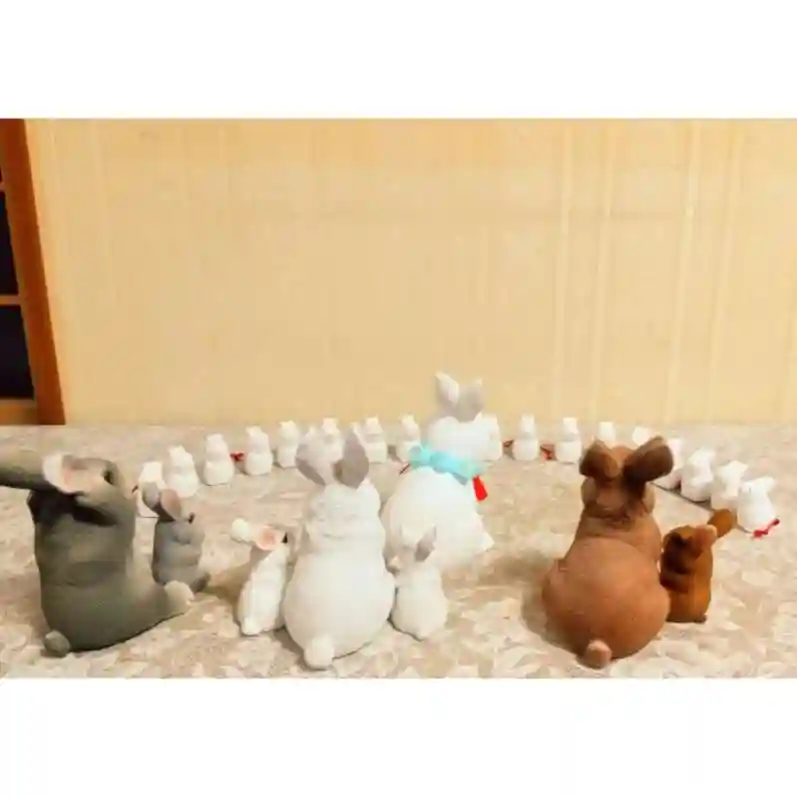 親ウサギさんが子うさぎさん達を寂しそうに見送っています。