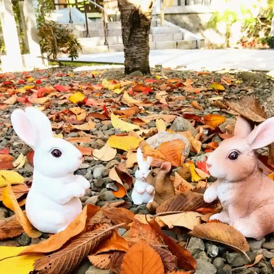 ウサギさん達が紅葉に囲まれ遊んでいるようですね❗️