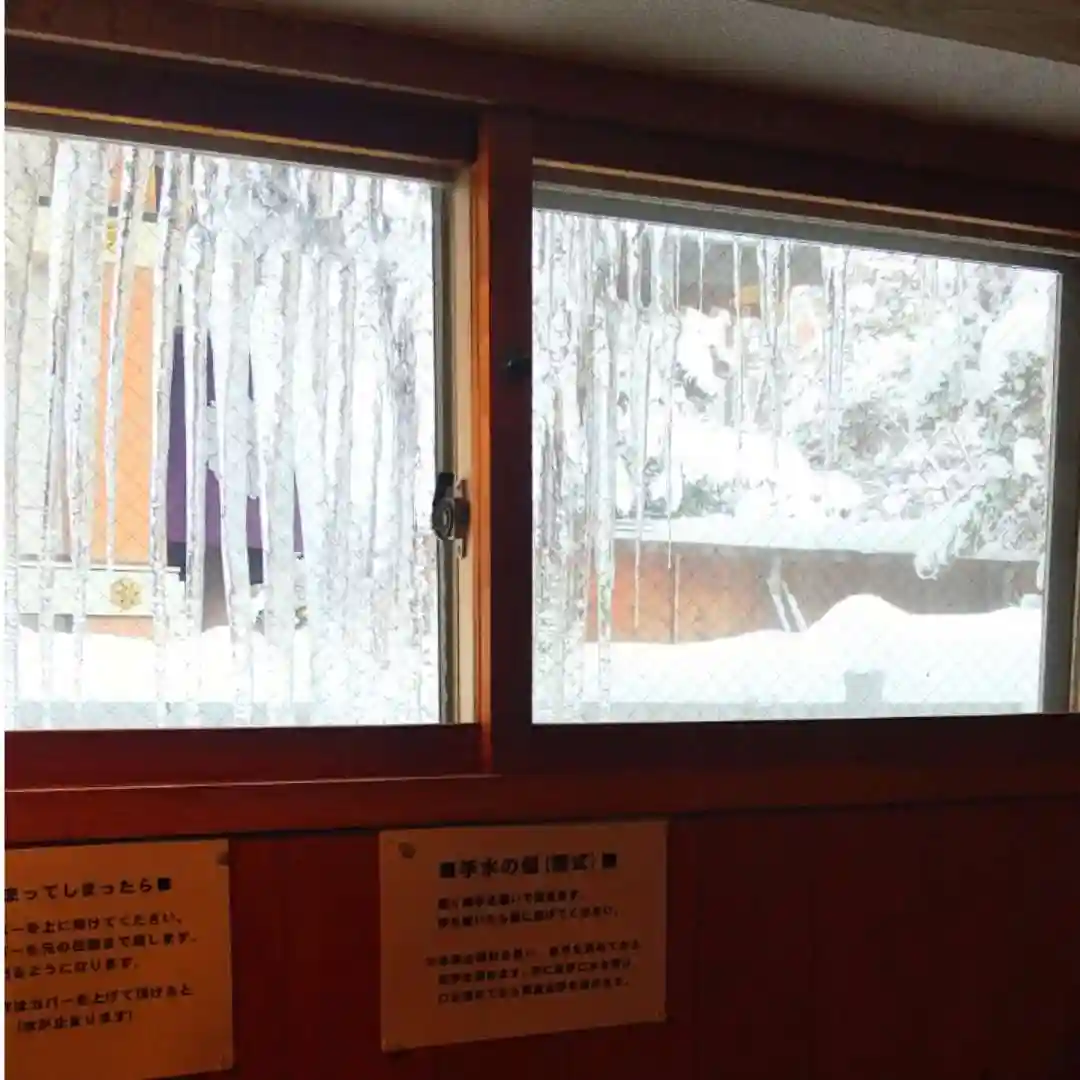 去年も同じような投稿をしましたが、今年も社務所の廊下の窓を見てみると、大きな氷柱(つらら)が出来ていました。