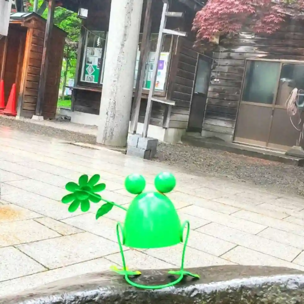 カエルさん達も心配そうに境内を見守っています🐸
