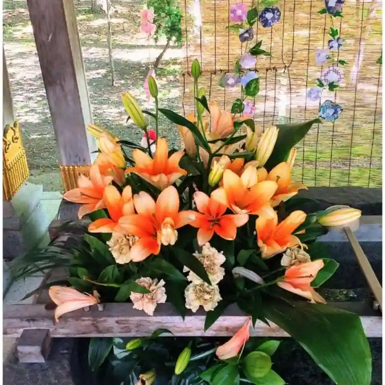 ユリの花も次々と咲いていき手水舎を彩っています。