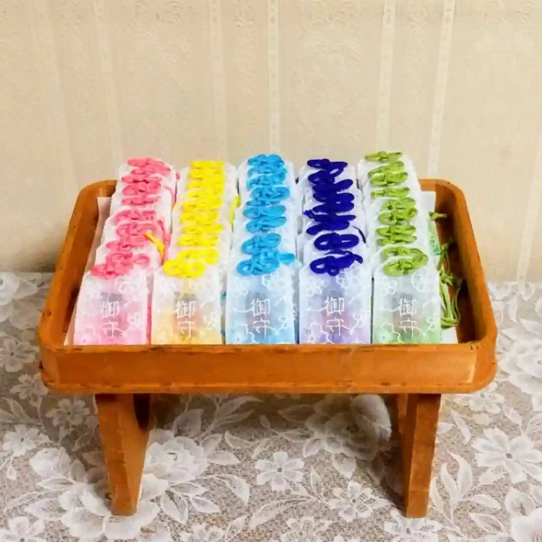 色は、ピンク・黄色・水色・紫・緑の5色がありますが、ご利益は全て同じです。