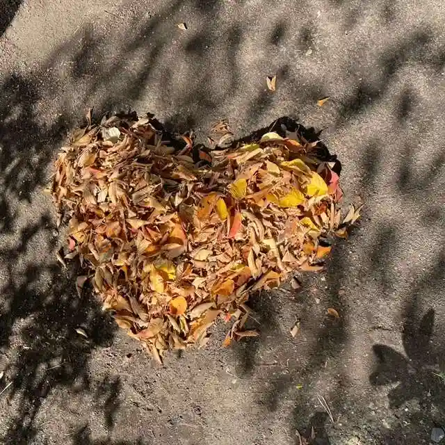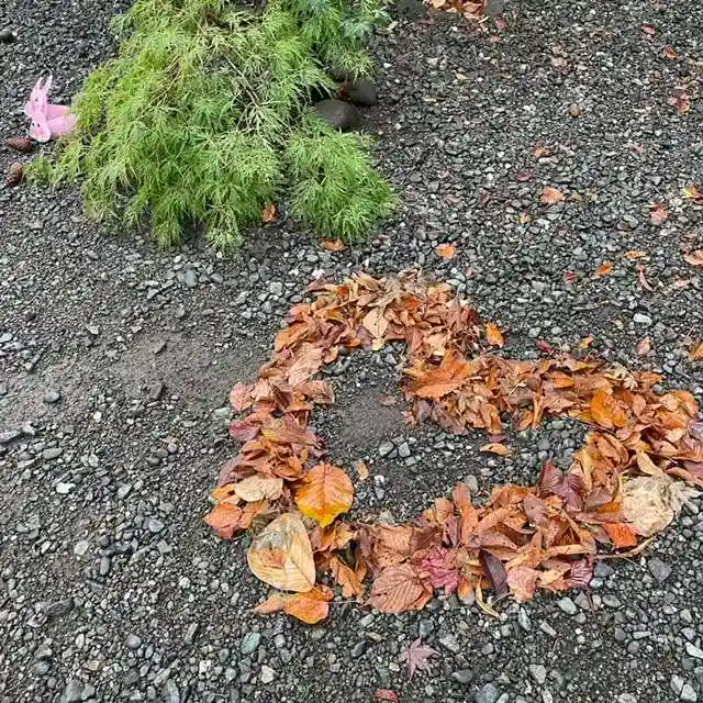 愛を込めて🫶落ち葉ハートを境内に作りました☺︎