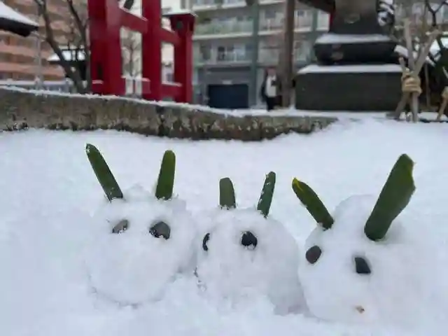 旧手水に小さな雪うさぎを作ってみました。