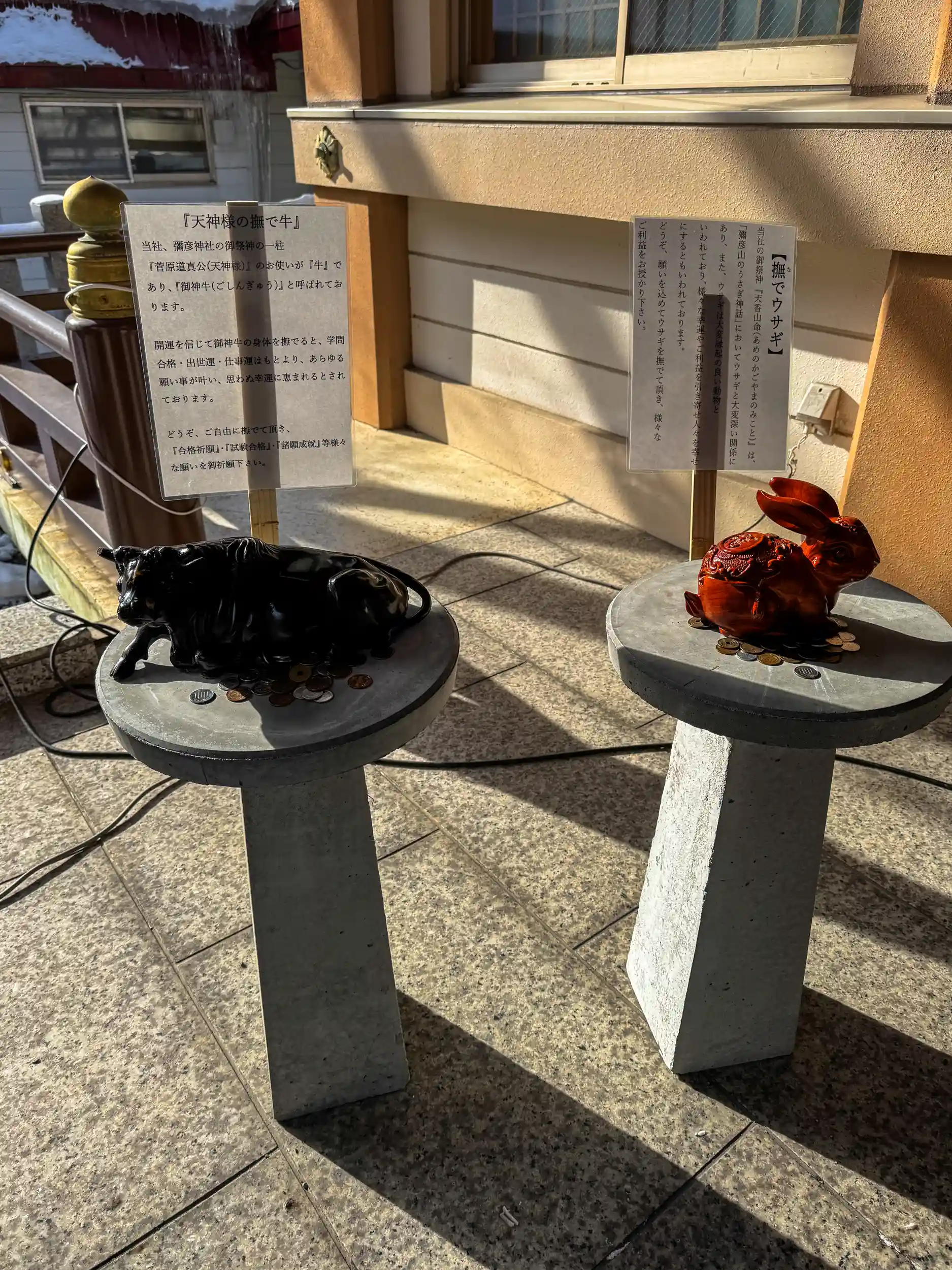 境内にいるウサギさんについての説明もお賽銭箱にありました。
