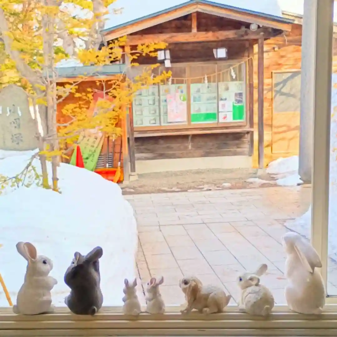 そして社務所では…、おや?ウサギさん達が窓際から外を覗いていますよ…!