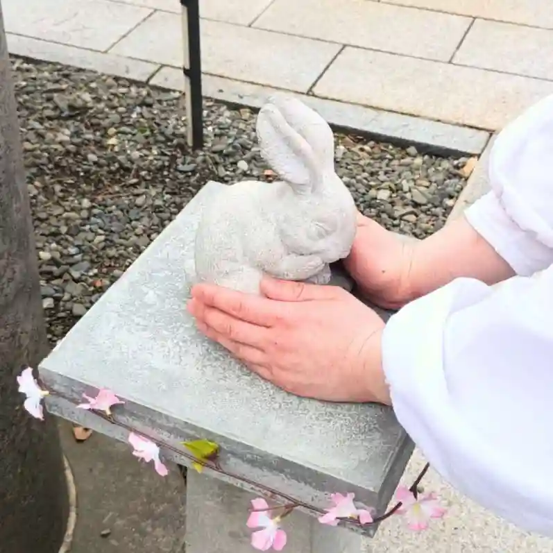 二、うさぎの像に手を添えて願い事を強く念じます