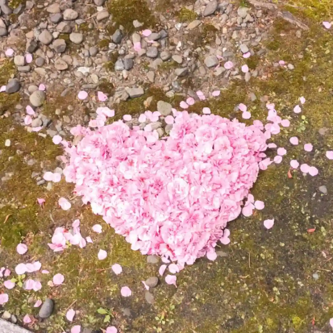 今日の朝、毎年冬の時期にお世話になっているハート職人さん(@happycolormayuさん)がお参りに来て下さり、八重桜(やえざくら)の花びらでハートを作って頂きました!🌸