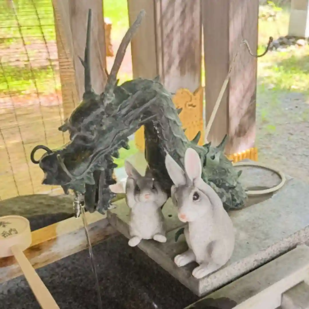 彌彦神社のウサギさん親子も手水舎で仲良く水遊びしています🐰🐰