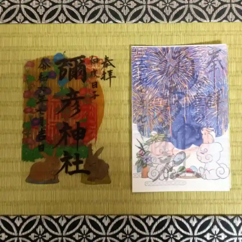 7月の御朱印は、いやひこまいぬ・ウサギさんが中心となって、夏らしさを感じさせてくれる御朱印となっています。