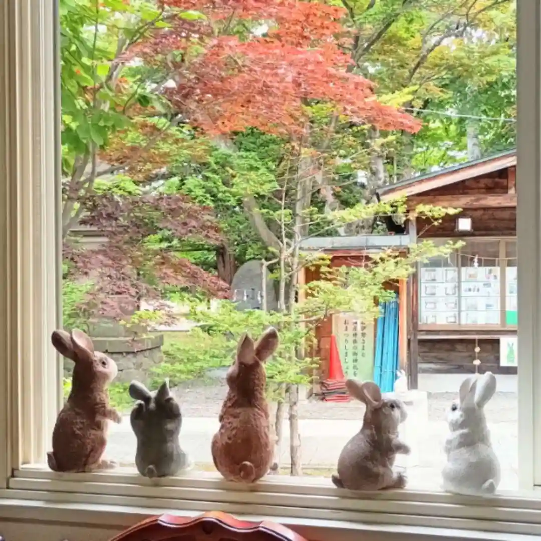 いつもは外にいるウサギさん達も、今日は社務所の中でお休み。窓際で参拝する皆様を見守っているようです🐰🐰