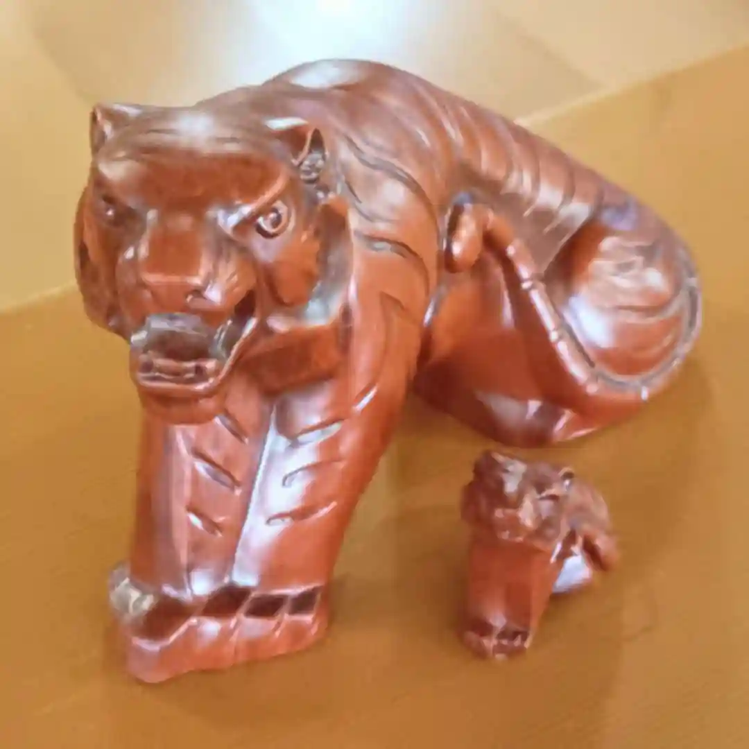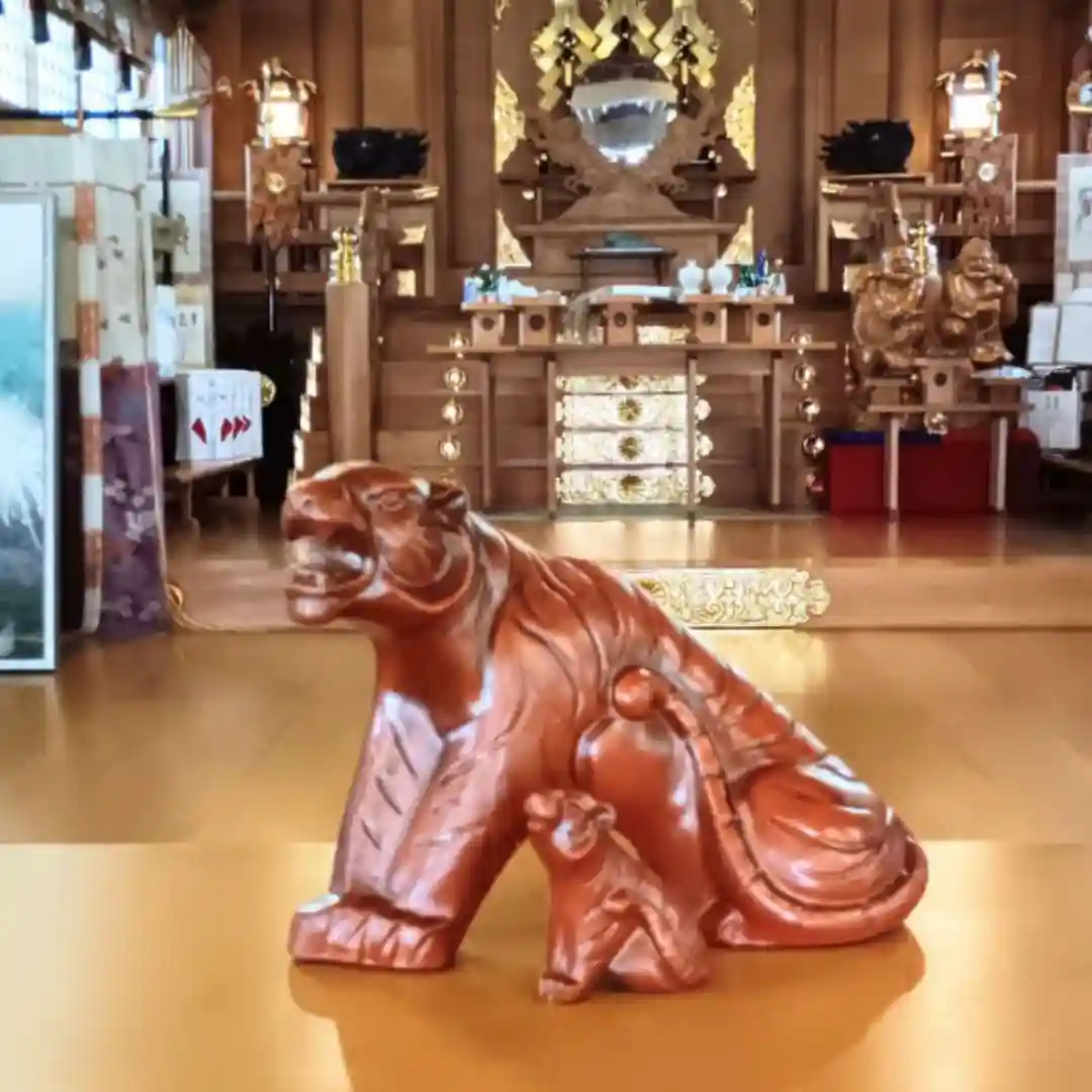本殿にて、寅の親子が勇敢に立っています。