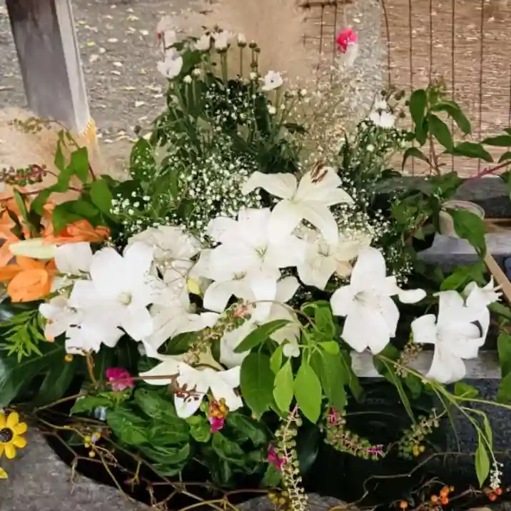 花手水のユリの花達が満開になりました!