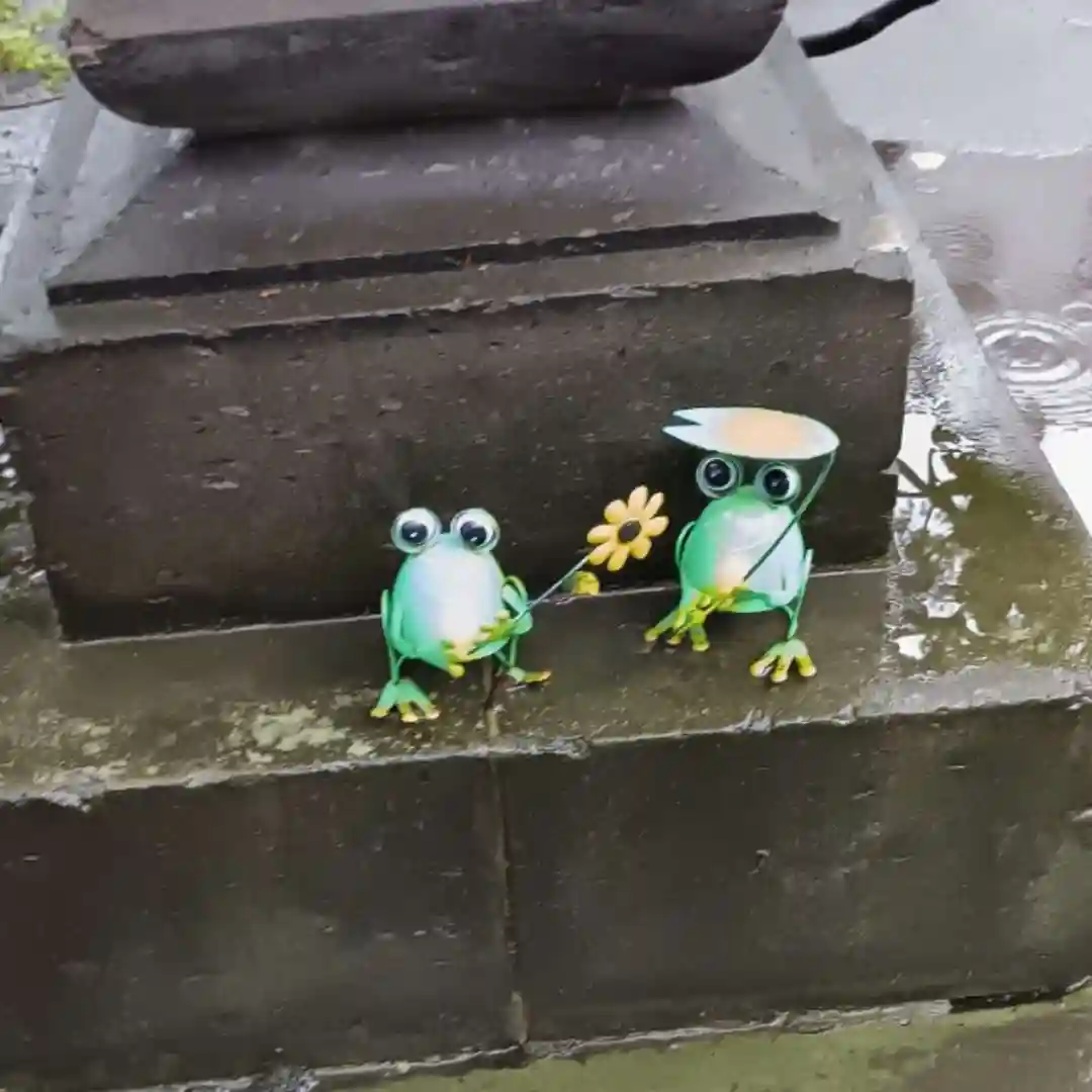 カエルさん達も、さすがにこの土砂降りには驚いたらしく避難していました🐸🐸