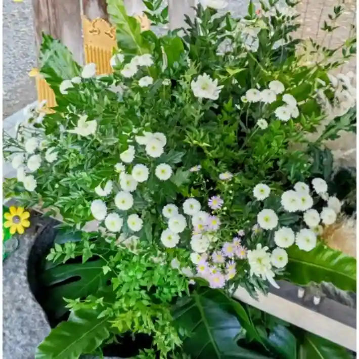 今回は小さな白い菊や、白菊などといった、白を基調とした、上品なデザインとなっております。