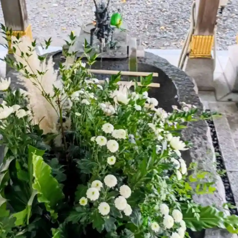 手水舎の花が新しくなりました🌼!