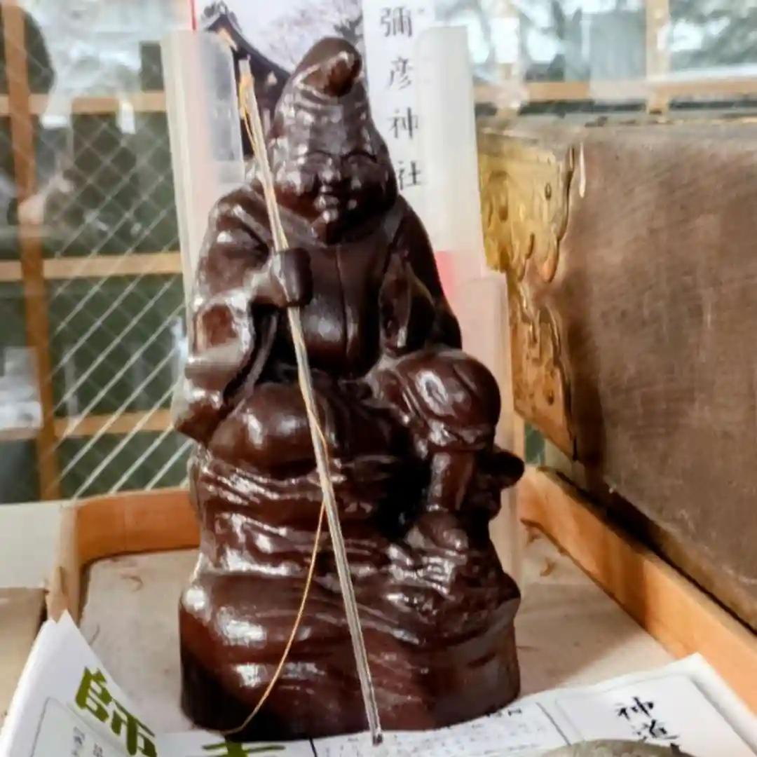 今月始めに、本殿前の賽銭箱を見てみると…、なんと「恵比寿様」の像が置いてありました!