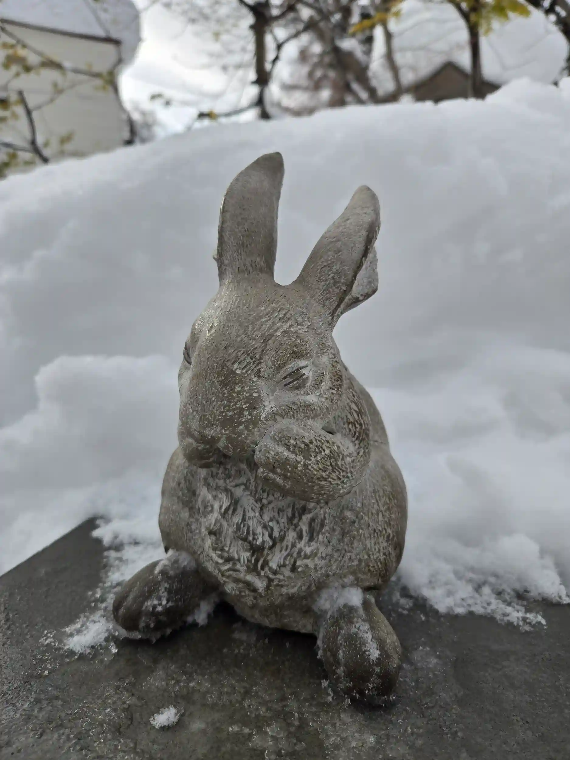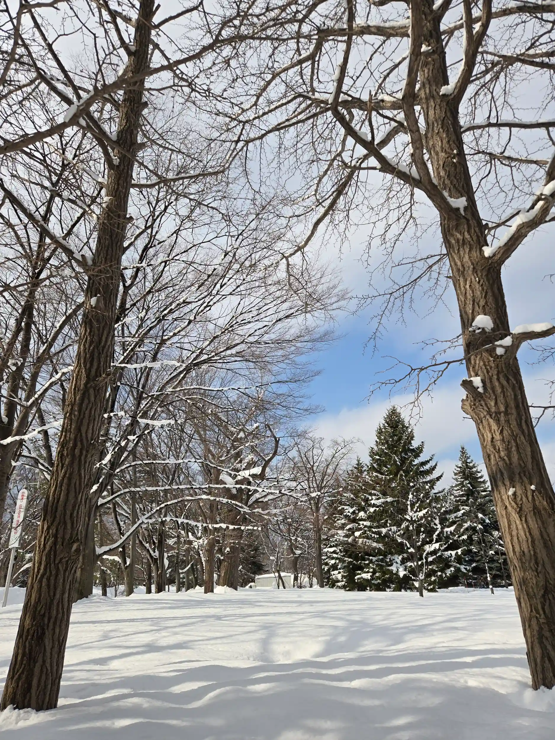 木から雪が落ちてきていました。