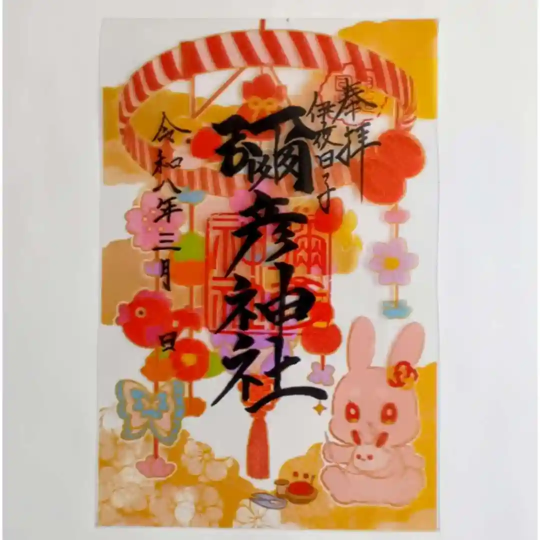 まん丸で可愛らしいうさぎさんと、様々な装飾の つるし雛が可愛らしい御朱印です!