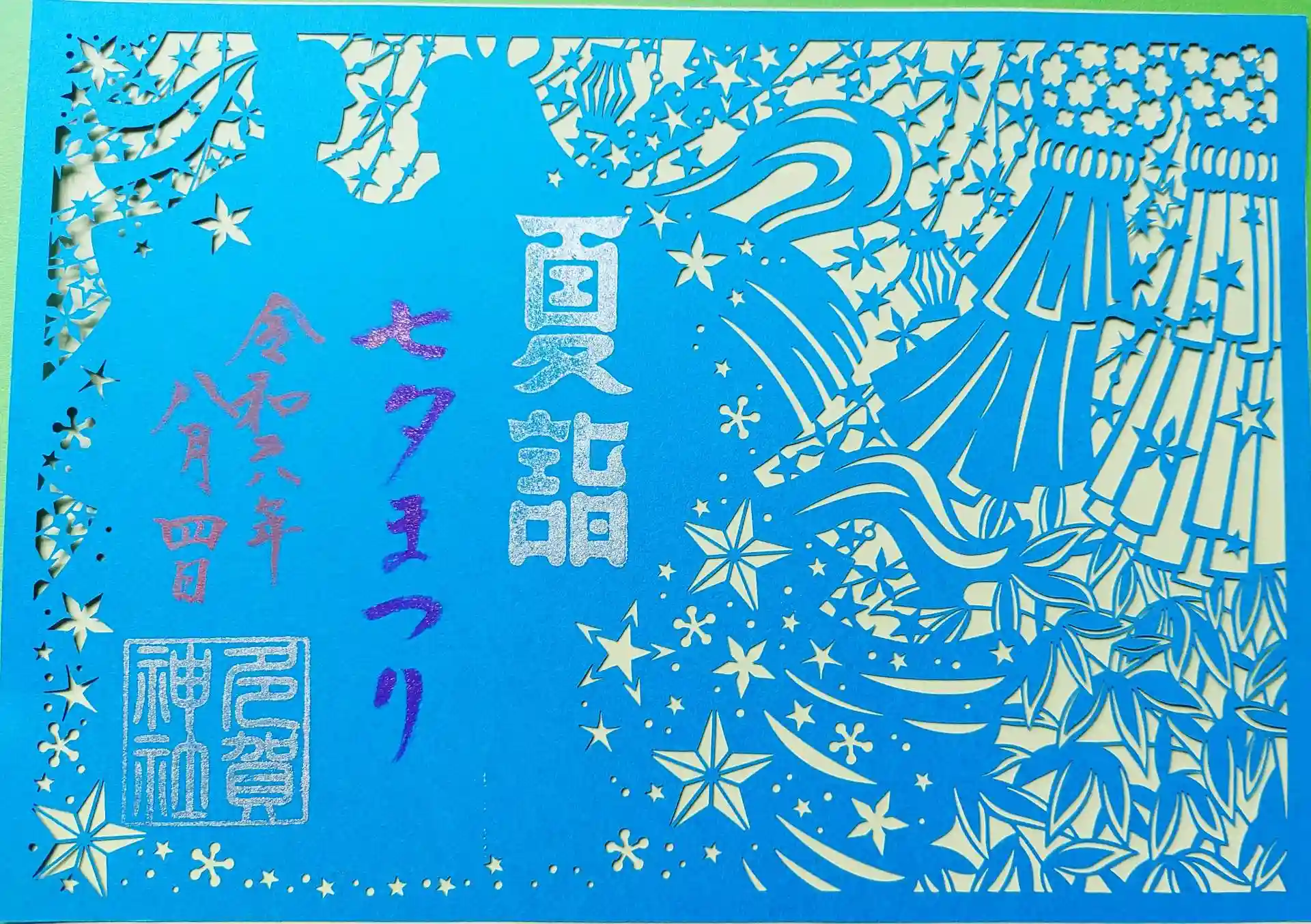 七夕まつりの切り絵御朱印を頂いてきました。