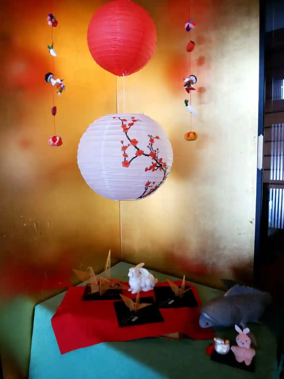 金屏風の前で🐅🐇バトンタッチ😄