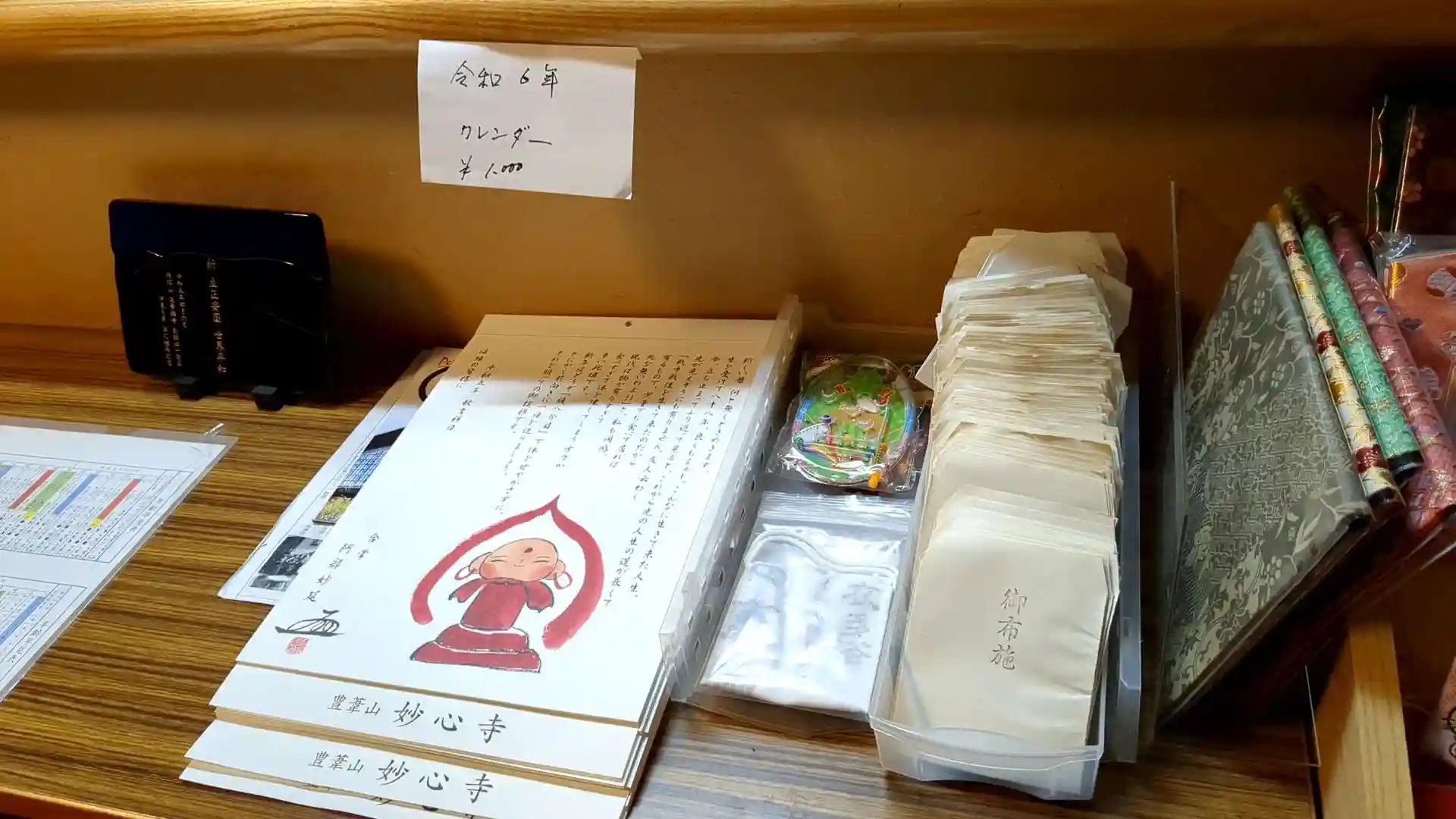 私が参拝に行った際は住職がお忙しく頂きませんでしたが普段は御首題を頂けるとのことです。寺務所では御守などを頂けます。年始だったので正月飾りがたくさんありました。