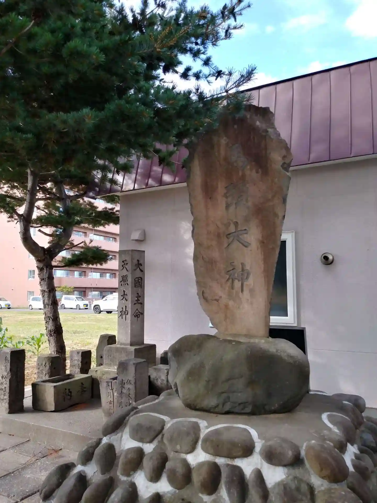 拝殿横奥に、馬頭大神と天照大神の碑があります。