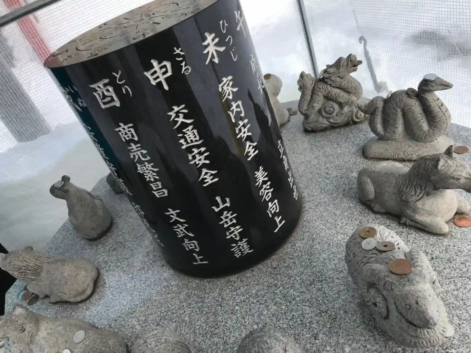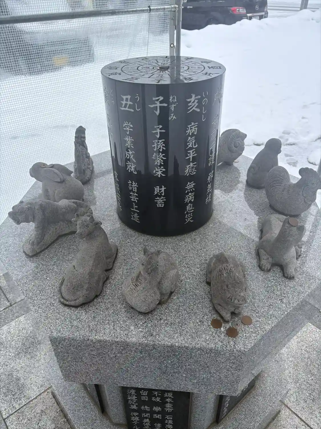雪よけのため?十二支像がテントに囲まれていました😃