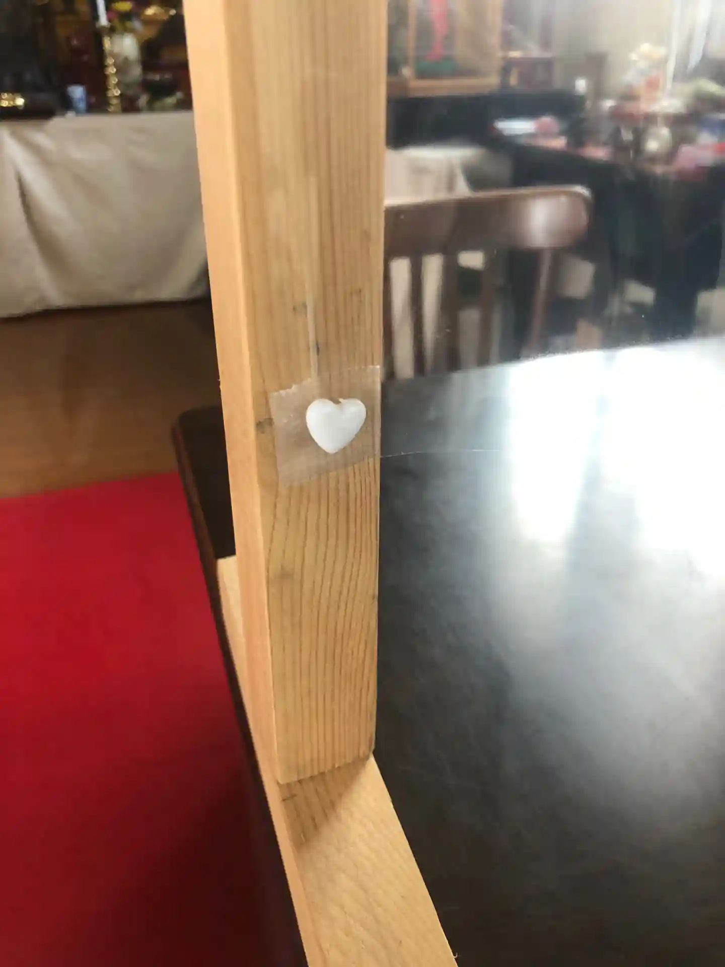 ビニールマット?を留めるためにハートの画鋲を使っています。