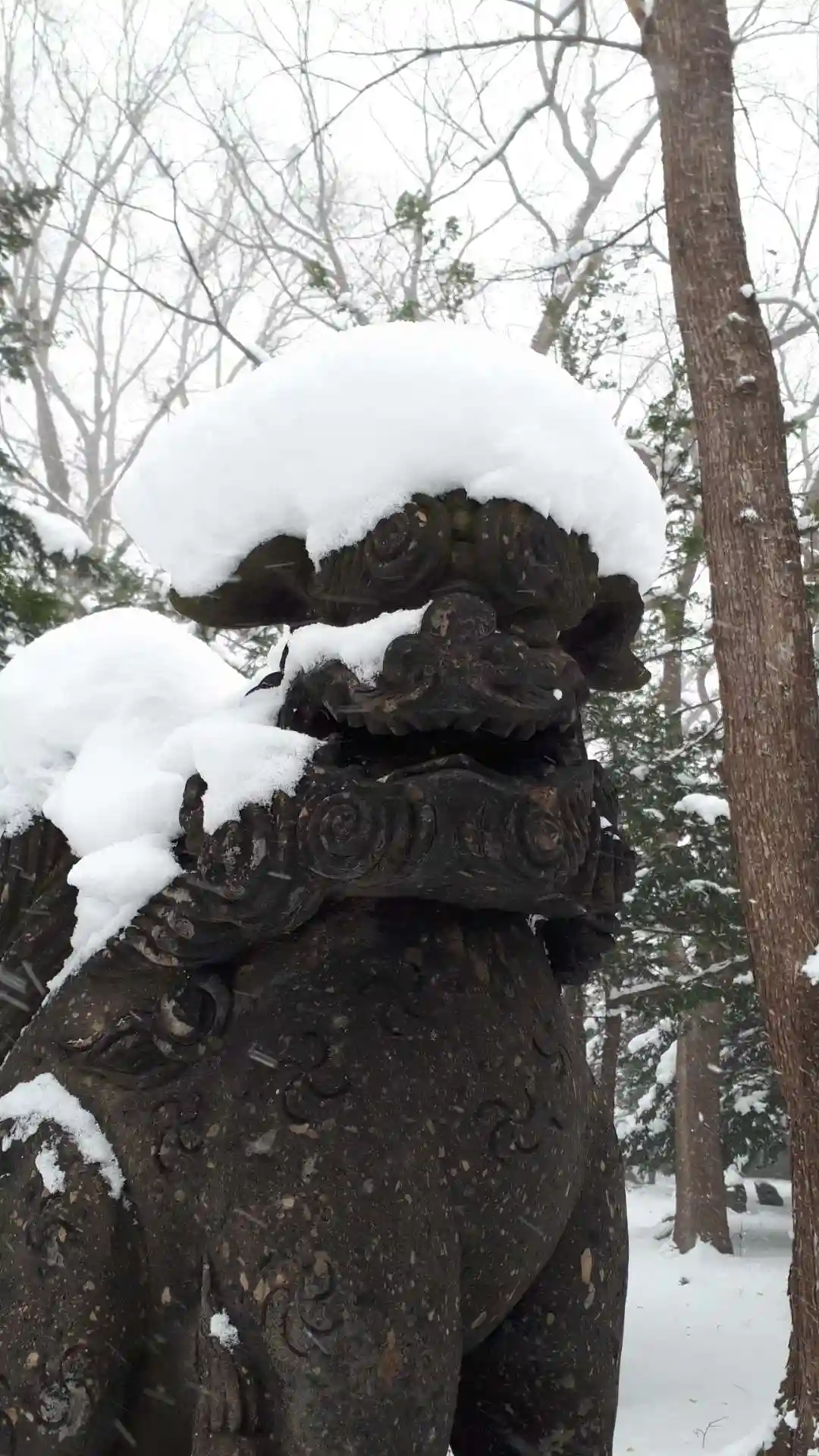 狛犬さんに雪⛄