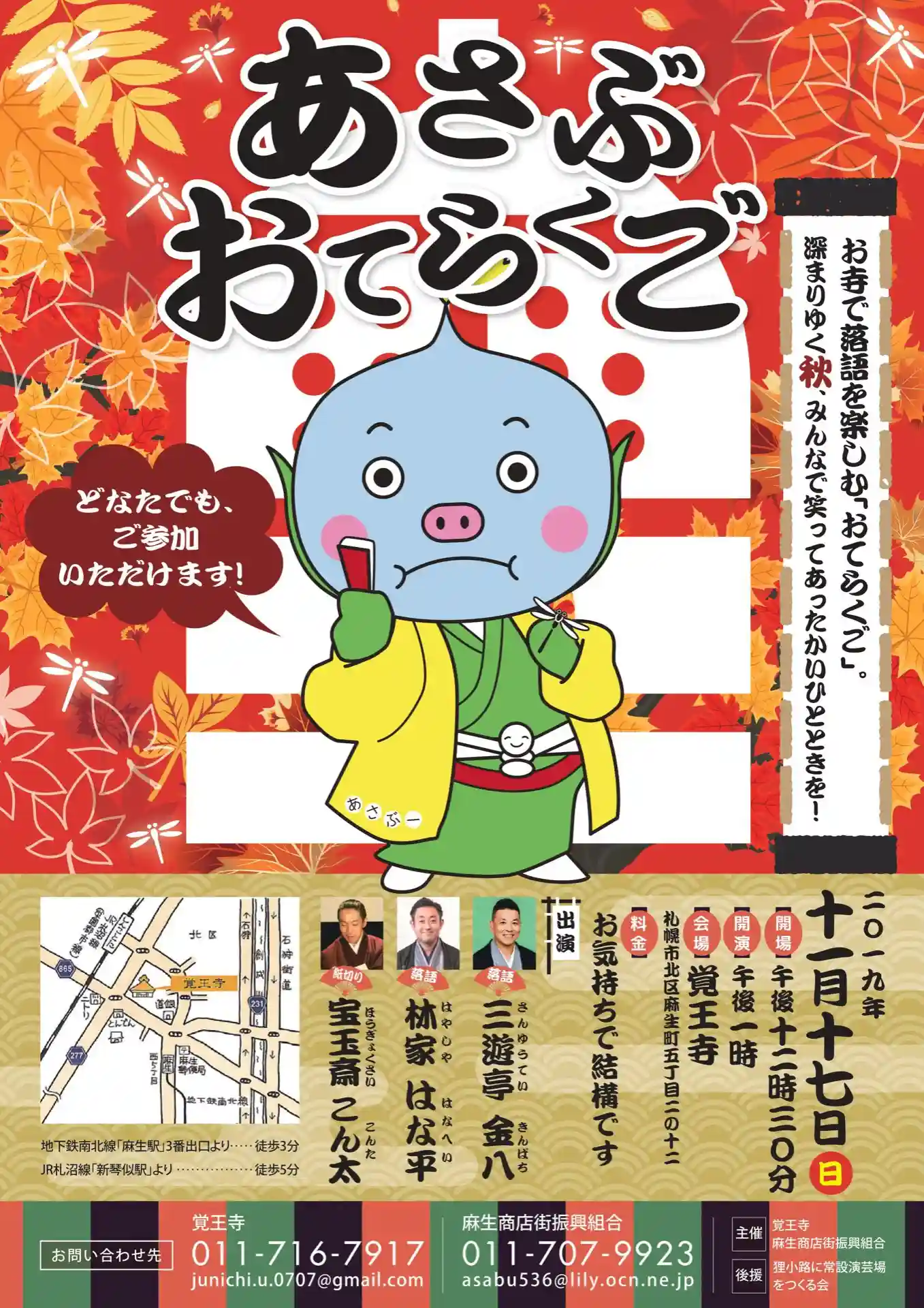 チラシのイラストは”あさぶー”というあさぶ商店街のキャラクターです。