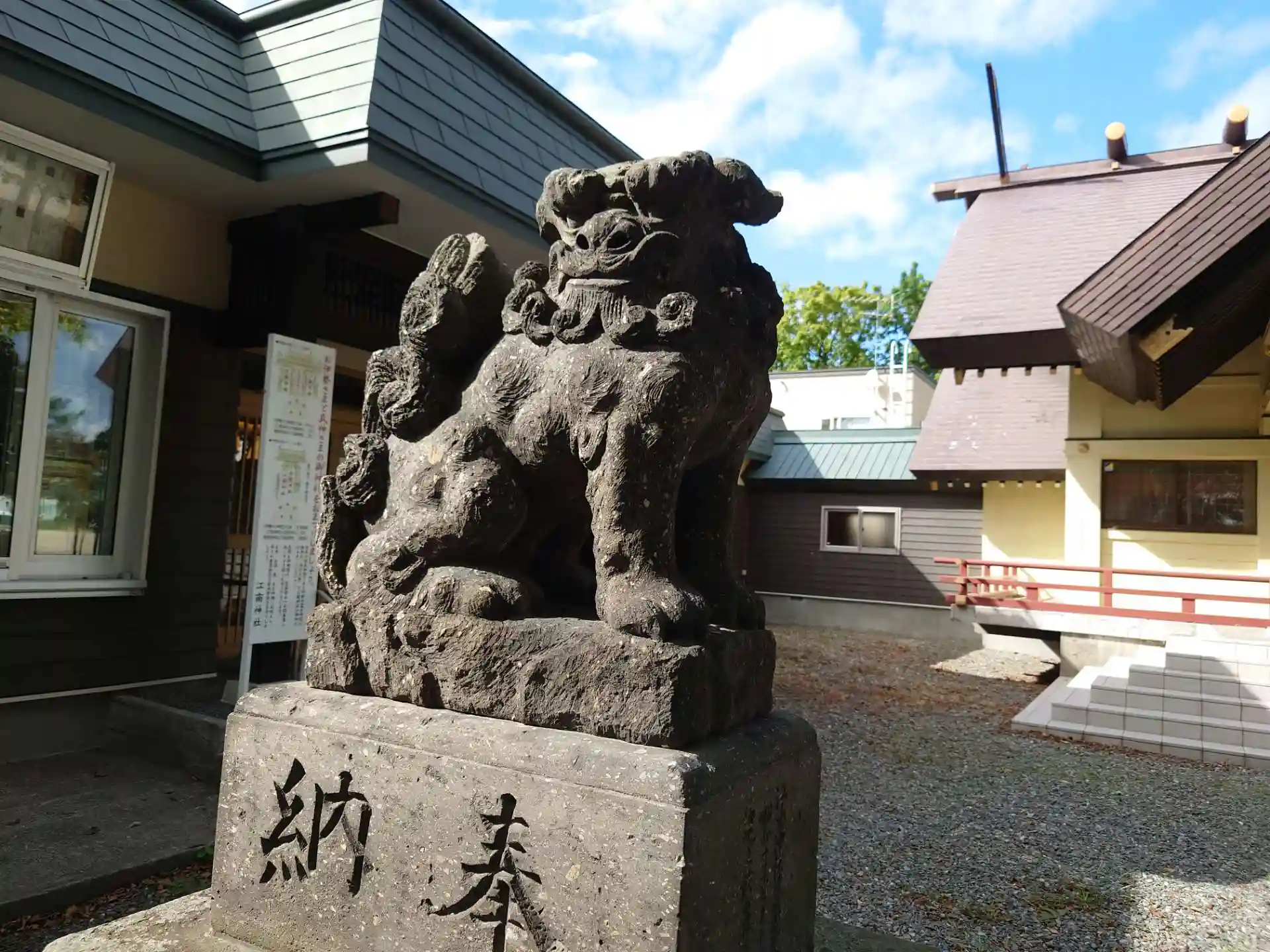 本日最後の神社です。一の鳥居を潜ると風雪に何とか耐えた松が痛々しい姿で頑張っていました。ぺっちゃんこのお顔の狛犬が愛嬌たっぷりと出迎えてくれます。書き置きの御朱印を戴きました。
