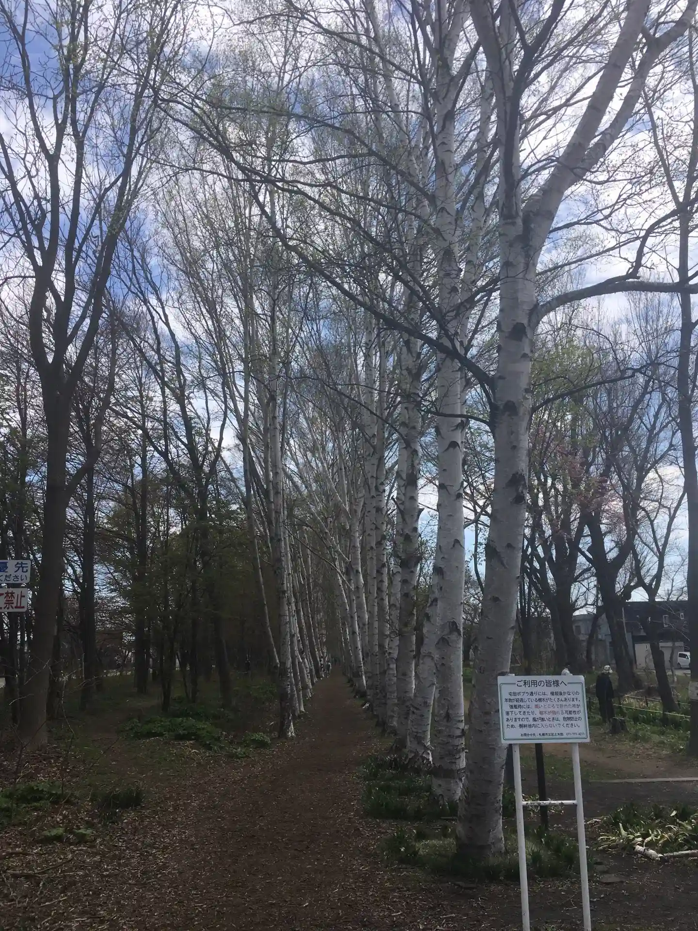 帰りに白樺の並木道を発見、まさに♪北国の春♪〜しぃ〜らかばぁ〜、あおぉぞぉおら、みぃいなぁ〜あみいっかあぜぇぇ♪by千昌夫
