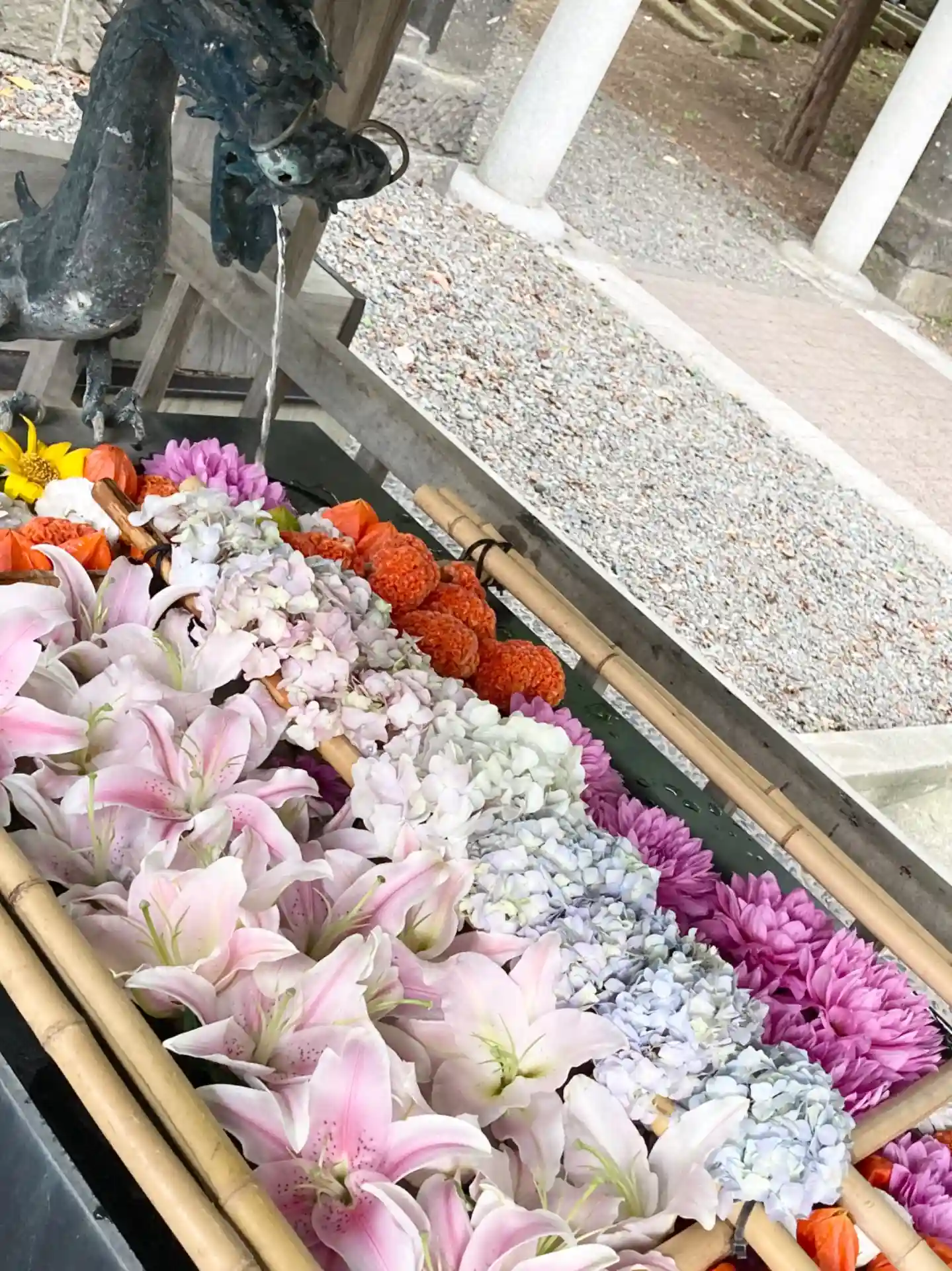 綺麗な花手水で疲れもストレス…