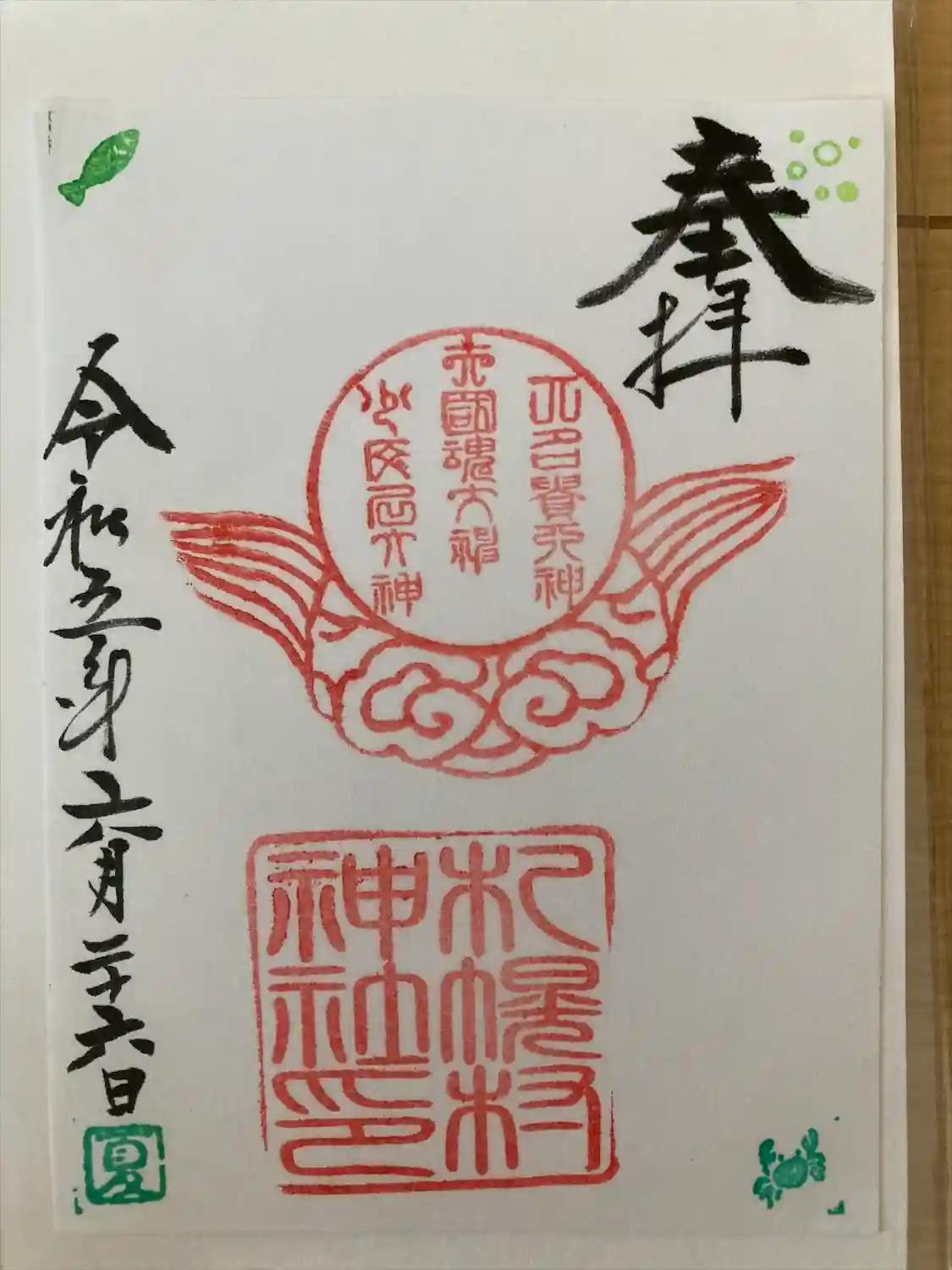 本日、御朱印は賽銭箱横に置いてあり、ミニお賽銭箱に入れる無人式でした。