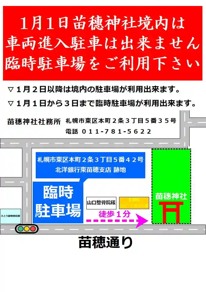 苗穗神社より1月1日の駐車場のご案内です。