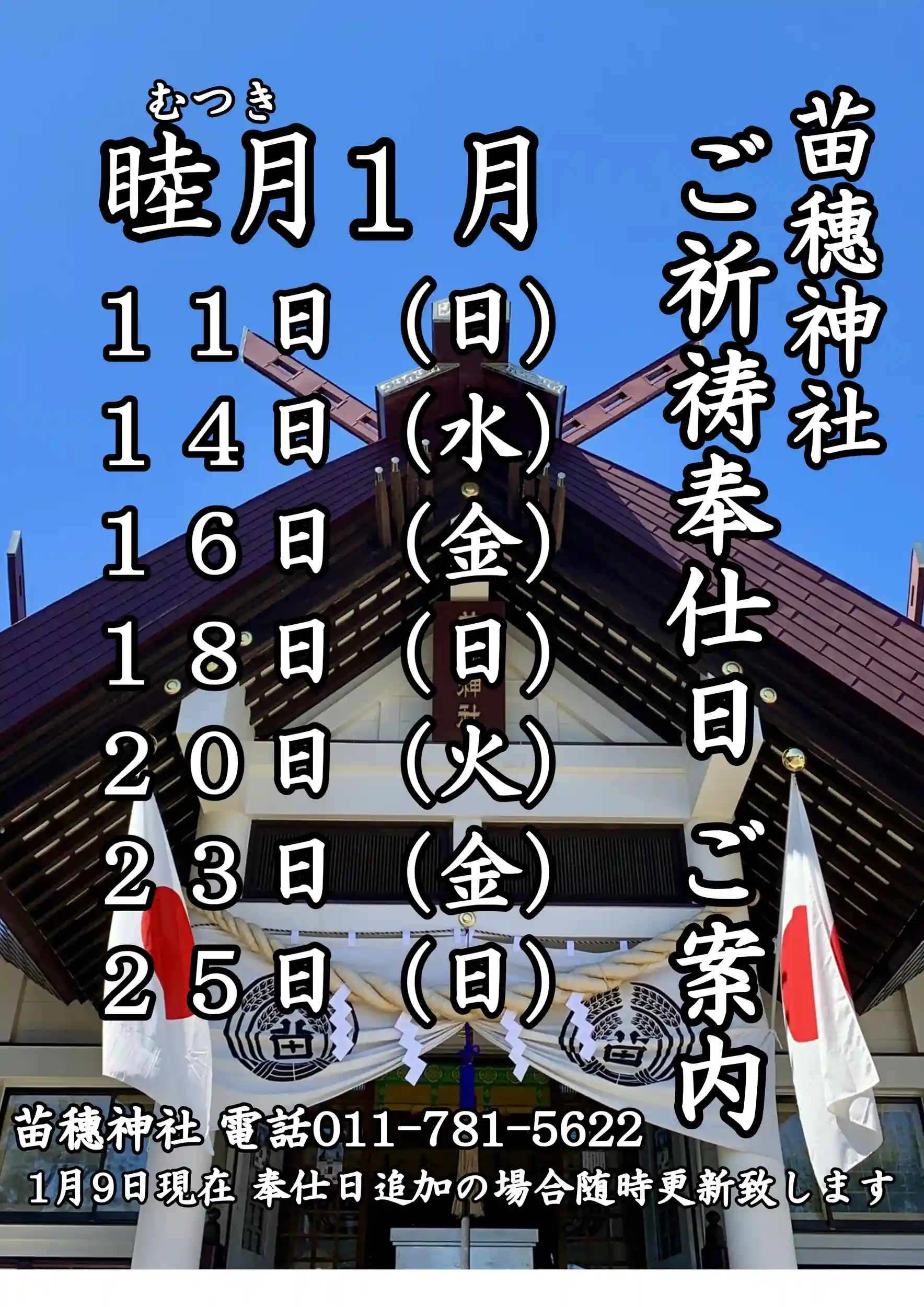 苗穗神社よりご祈祷奉仕日のご案内です。