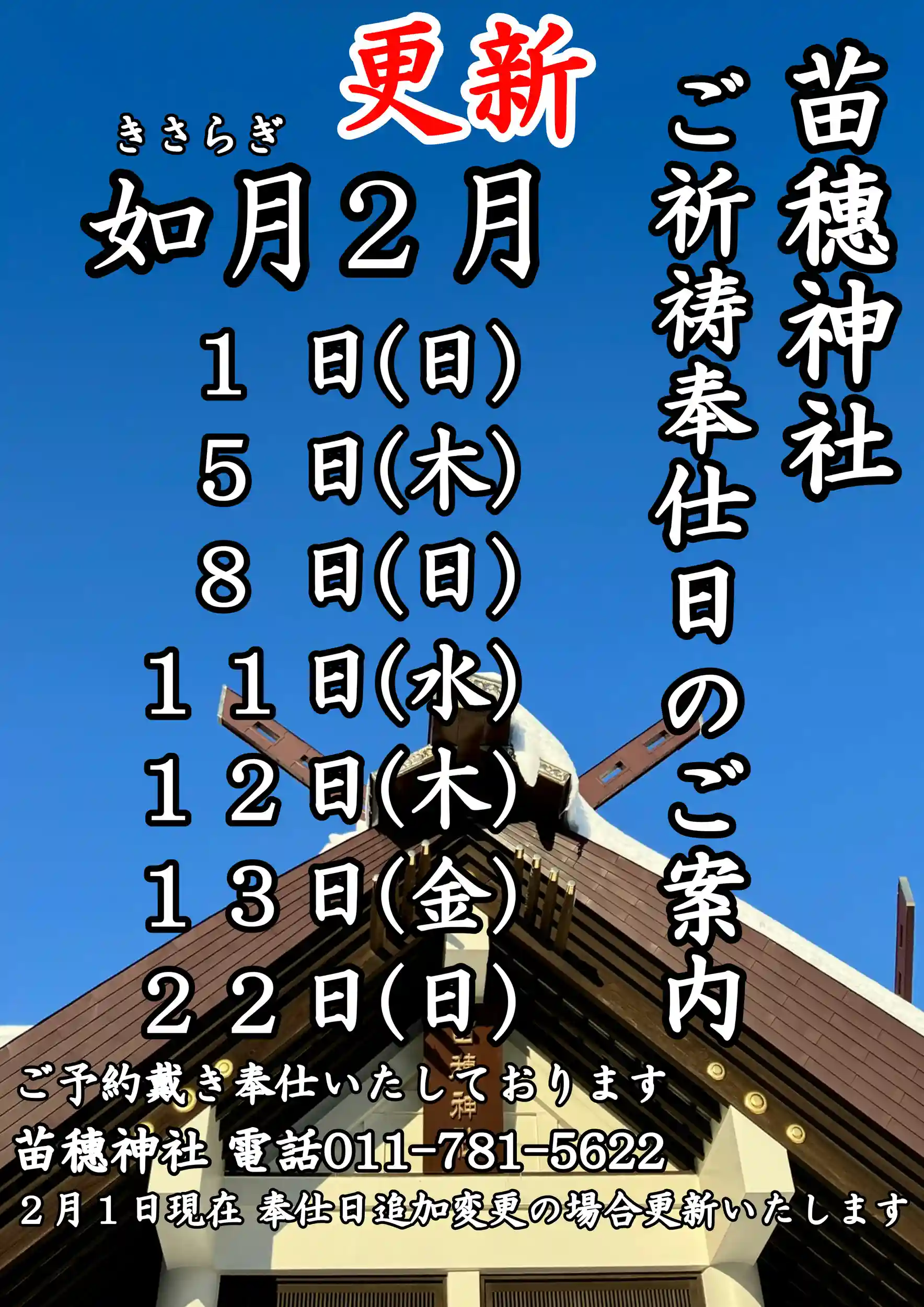 【更新】苗穗神社より2月ご祈祷奉仕日のご案内です。