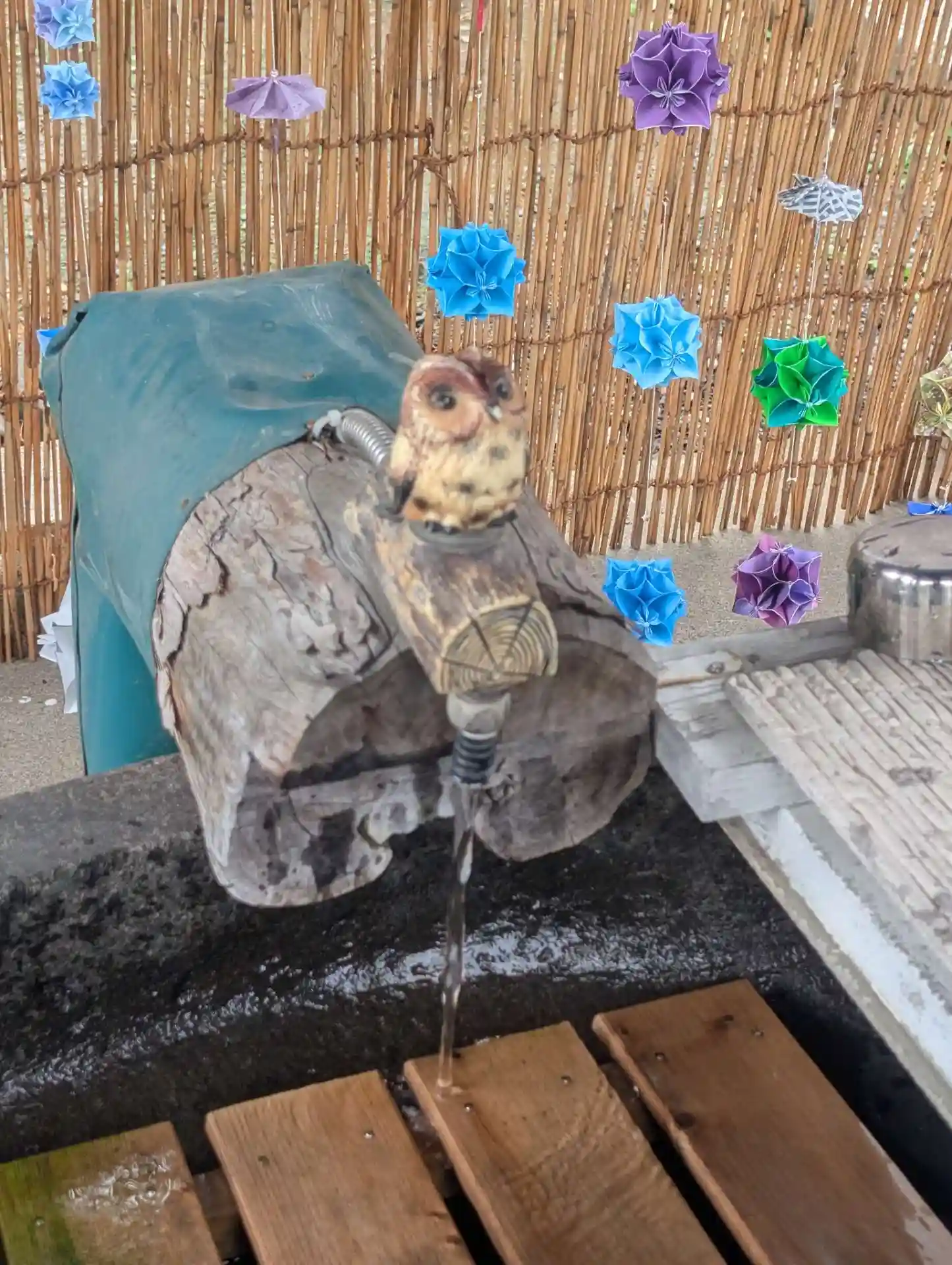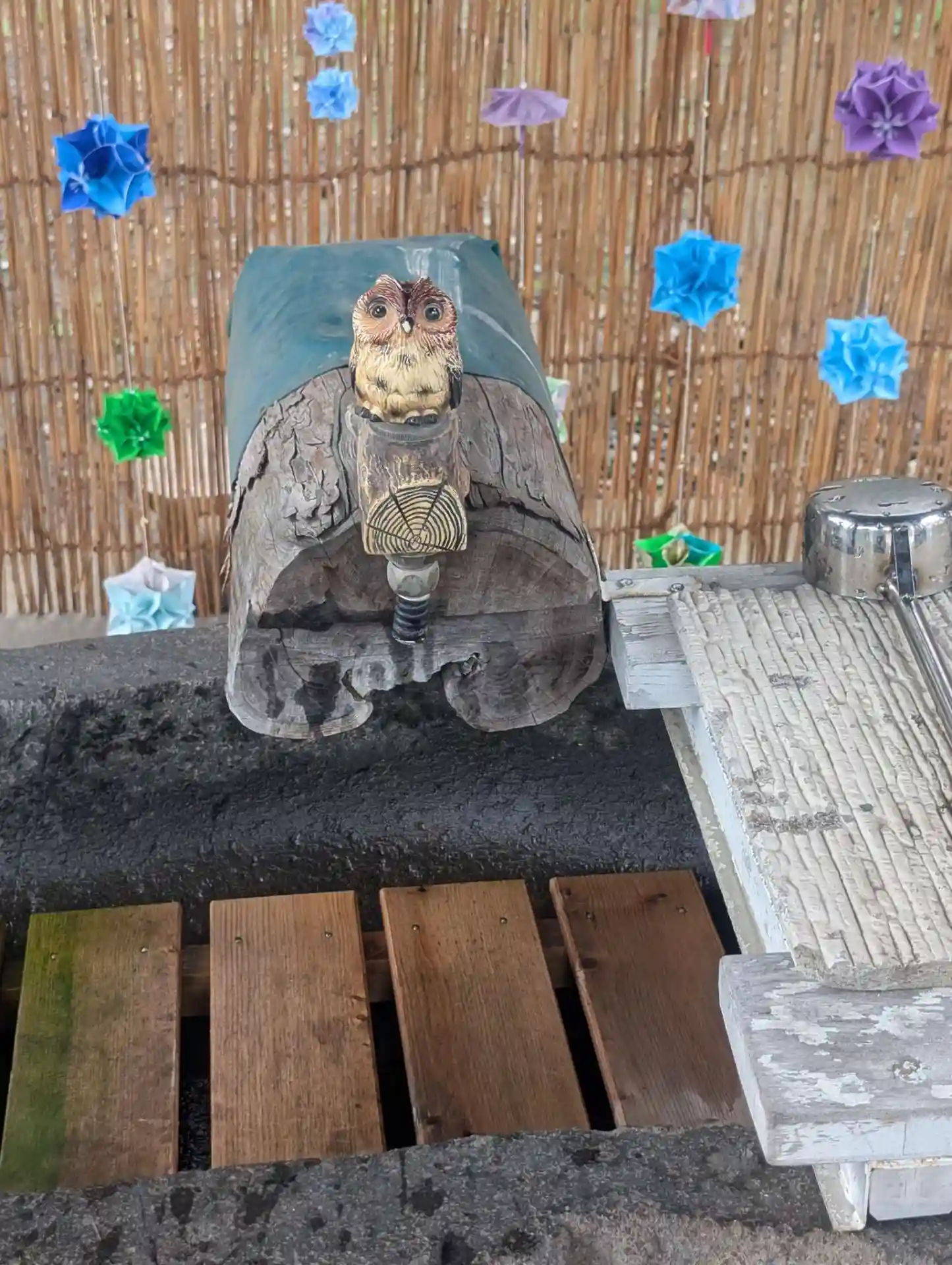 手水にふくろうさんが居て蛇口になってます。
